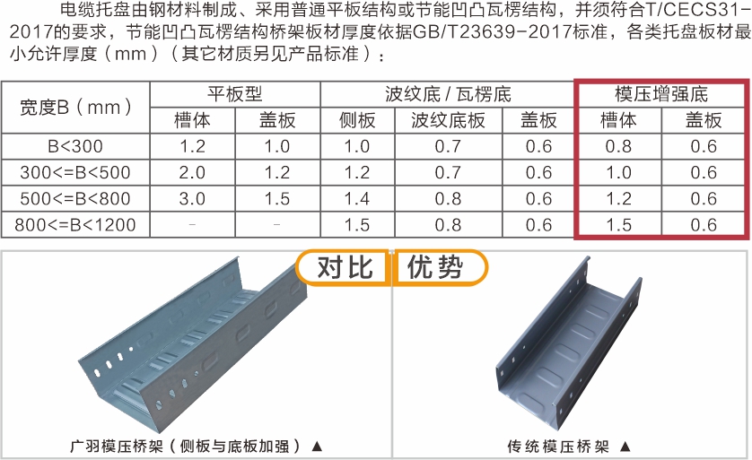 節(jié)能增強底模壓橋架,增加抗彎和抗撓度性能,保持強度的同時降低橋架自身重量,對于節(jié)能減排亦具有重要意義。