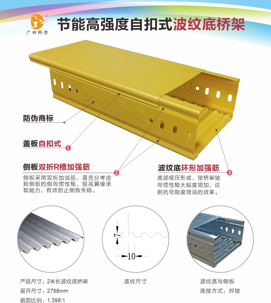 節(jié)能增強底模壓橋架,增加抗彎和抗撓度性能,保持強度的同時降低橋架自身重量,對于節(jié)能減排亦具有重要意義。