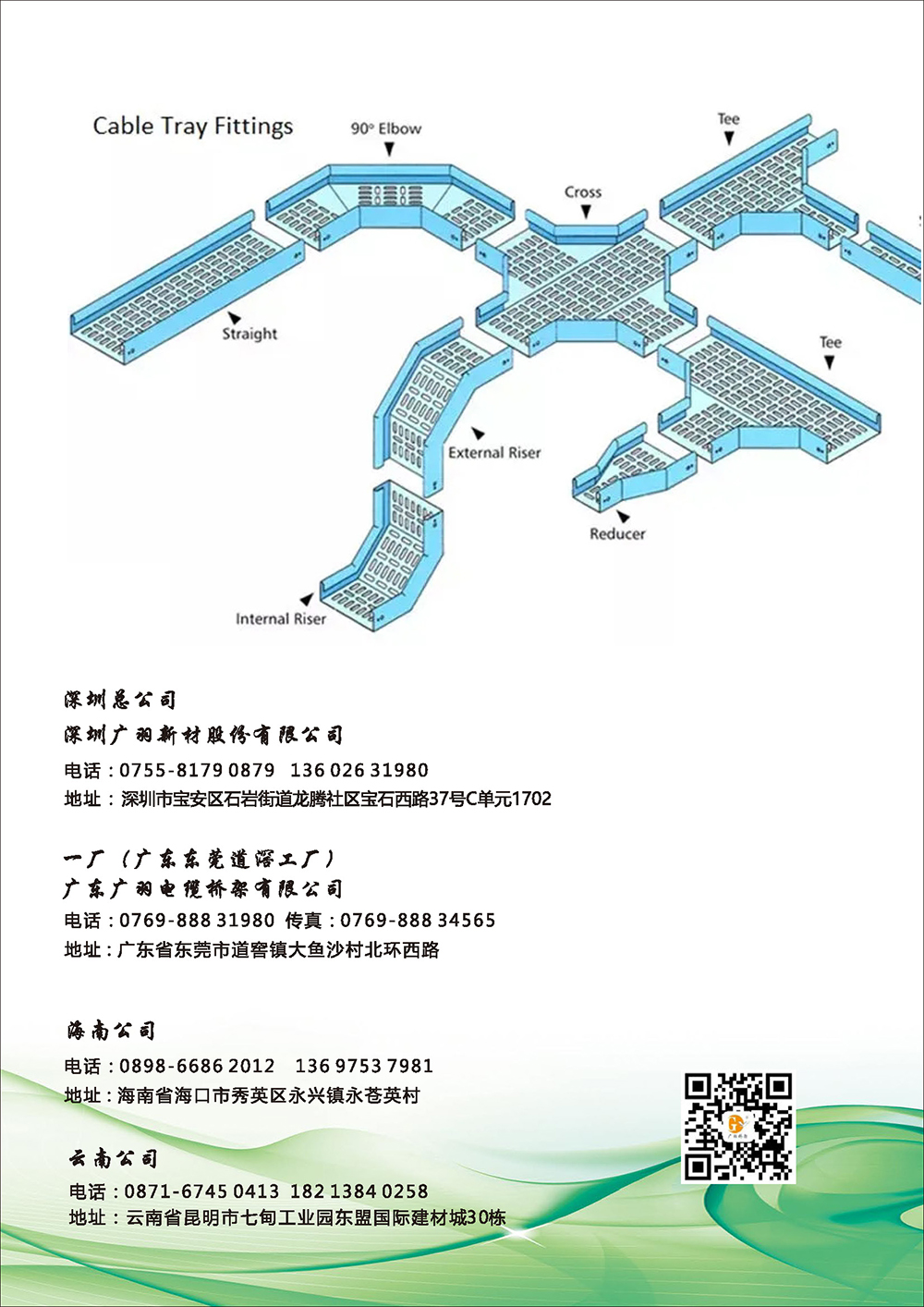 槽式橋架其各項技術(shù)指標均處于國內(nèi)同行業(yè)先進水平,表面防腐層類別主要有熱鍍鋅、電鍍鋅、粉末噴涂或鍍鋅后噴涂粉噴涂等方式。