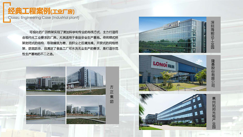廣羽橋架成功開發(fā)了阻燃塑料、鋁合金、鋼制光纖槽道三種材質(zhì)的光纖槽道,為客戶提供更實(shí)用的產(chǎn)品,更少的施工時(shí)間,更靈活的槽道。